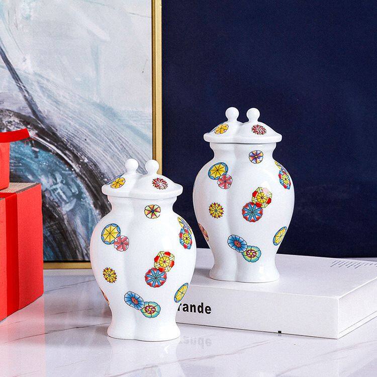 Modern Simple Fashion Creative White Electroplate Ceramic Vase With Lid For Bedroom Decor