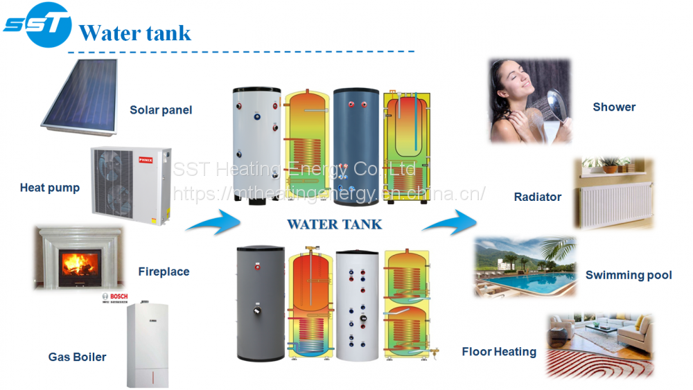 • combined with solar heation system, heat pump, electrical heater and other heating source