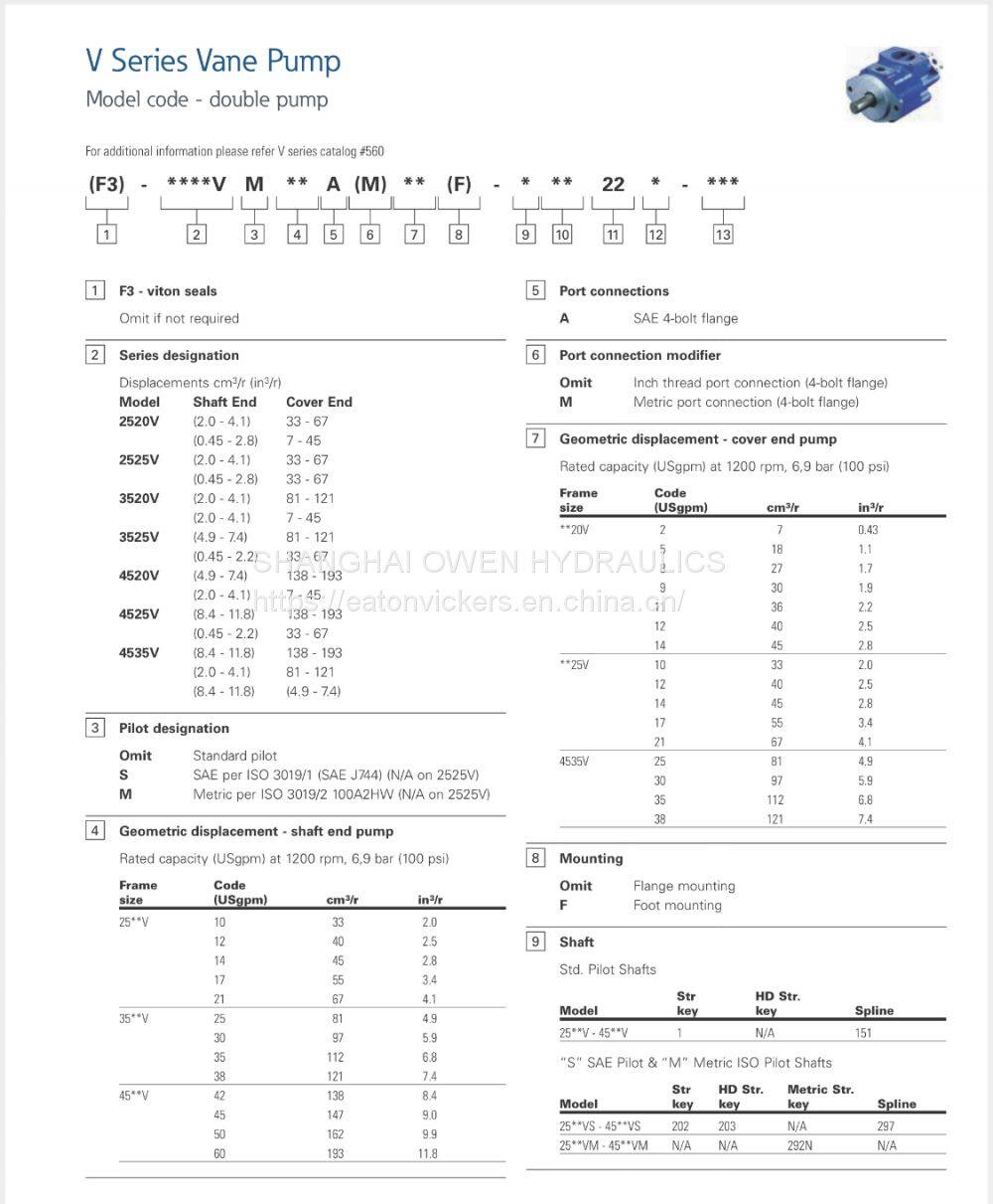 EATON VANE PUMP 45VQ42A-1A20 45VQ50A-1A20 45VQ60A-1A20 4535V60A38-86AA22R F3-20V12A-1C22R F3-20V5A-1C22RUS$ 500 - 600MOQ: 1 Piece