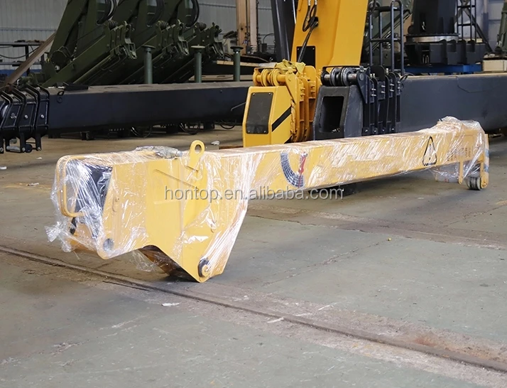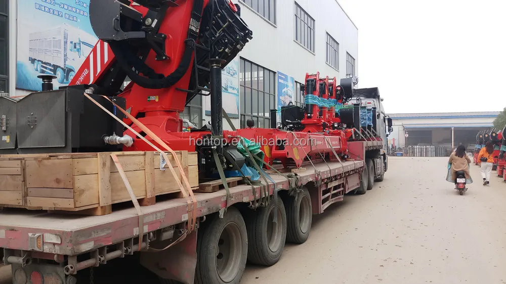Hontop truck-mounted crane is made of high-strength and high-toughness HG785/HG960 steel, imported Italian MBP hydraulic pump imported balance valve, planetary gear rotary reducer, two-way hydraulic lock imported sequence valve domestic high-quality cylinder seals, etc., the lifting performance of the whole crane has been greatly improved , The heat dissipation is strong and the durability is high, the hexagonal bending is highly compact at one time, effectively reducing the lateral shaking, the weight of the whole crane is greatly reduced, and the micro-movement of the whole crane is greatly improved.