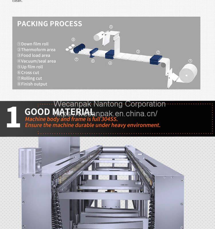 machine working procedure: down film thermoform shape-manual loading -printing date-vacuum-sealing-trimming