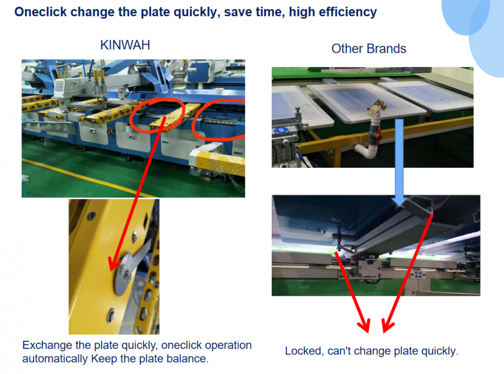 2) Exchange plate quickly, only need few second, one-click operation automatically keep the plate balance.Various printing