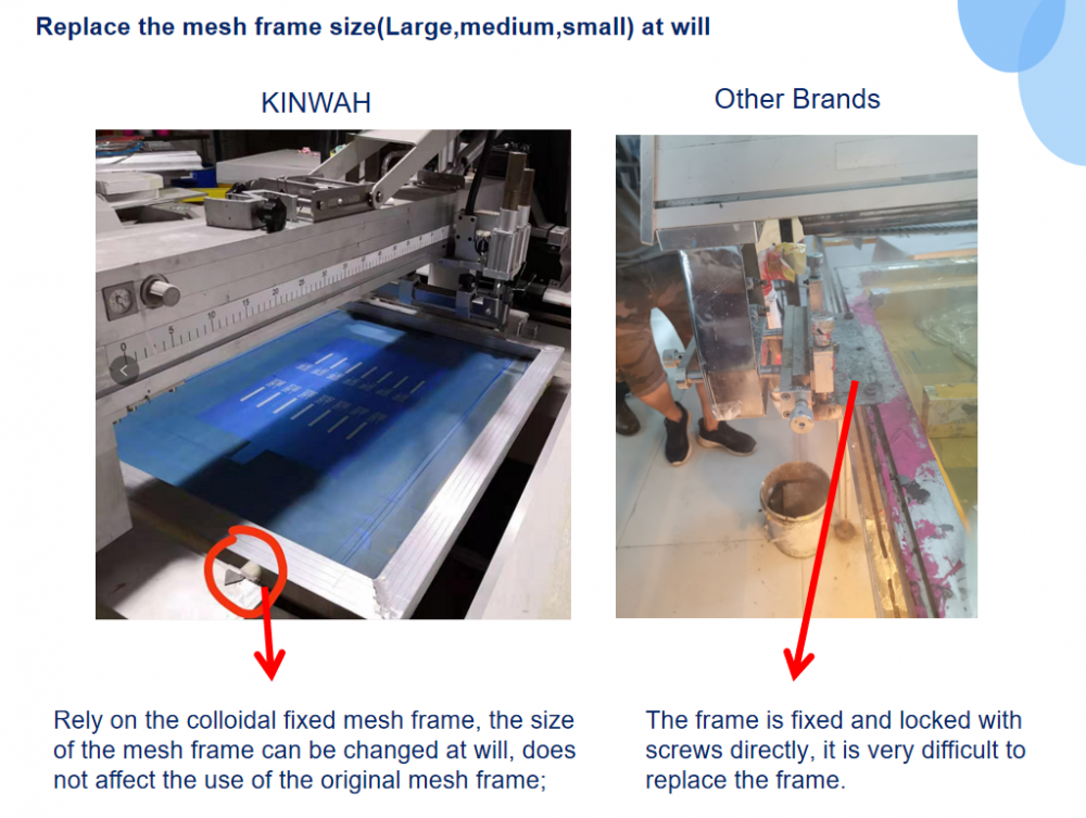 6) Lower the production cost, large,medium and small mesh frame arbitrary interchange, without any waste of the existing screen