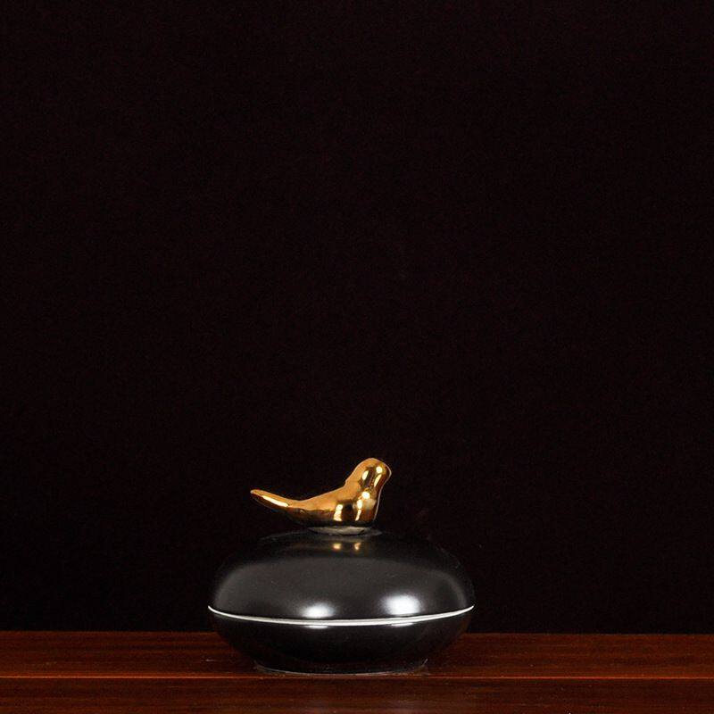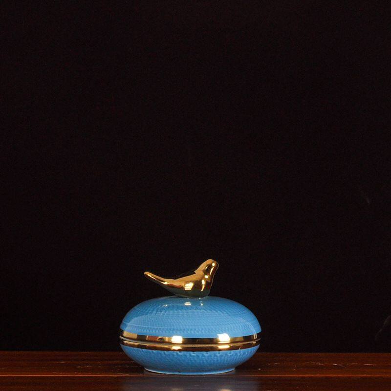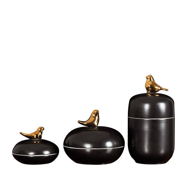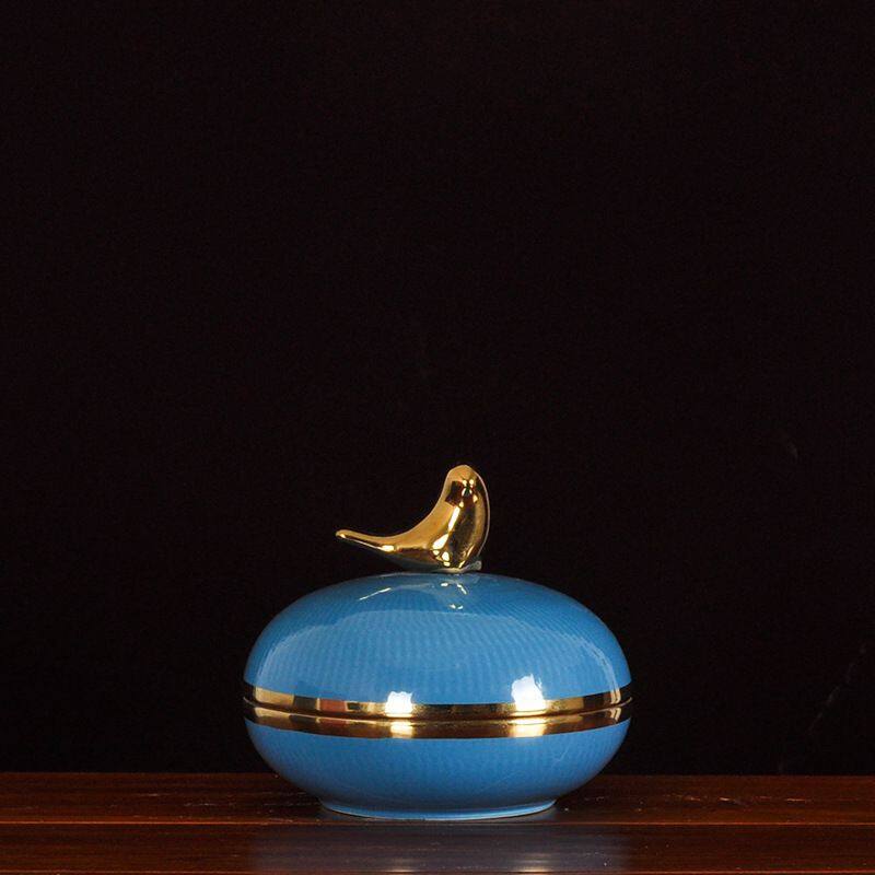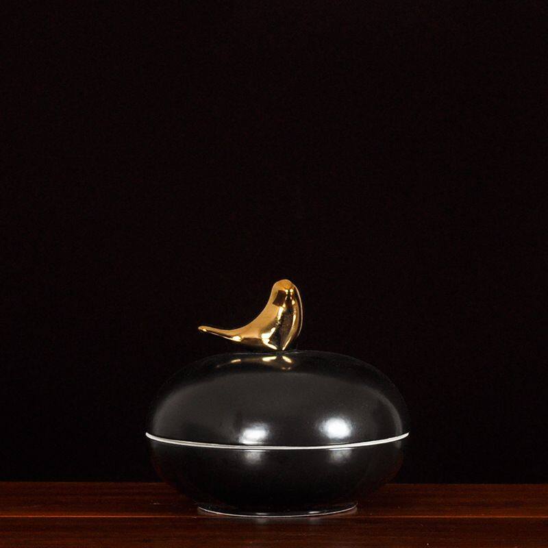 This ceramic vase comes with a metal lid in the shape of a bird. It is made of high-temperature white porcelain, which is quite heavy. It is all hand-pulled and hand-carved, each set is unique.Using electroplating process, the production method is semi-manual and semi-mechanical, the origin is Jingdezhen, Jiangxi, China.The vase comes in two colors, blue and black, and each color comes in three sizes.