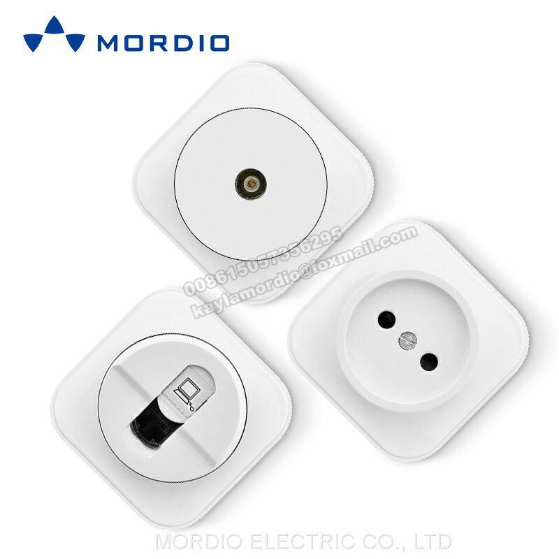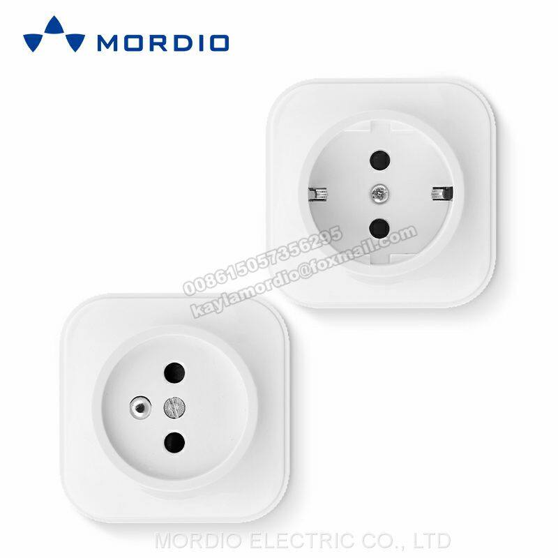 MORDIO Factory Direct Brand OEM PC WHITE 10A Wall Switch and Socket Surface Mounted Socket Germany French Russia 16A SOCKET