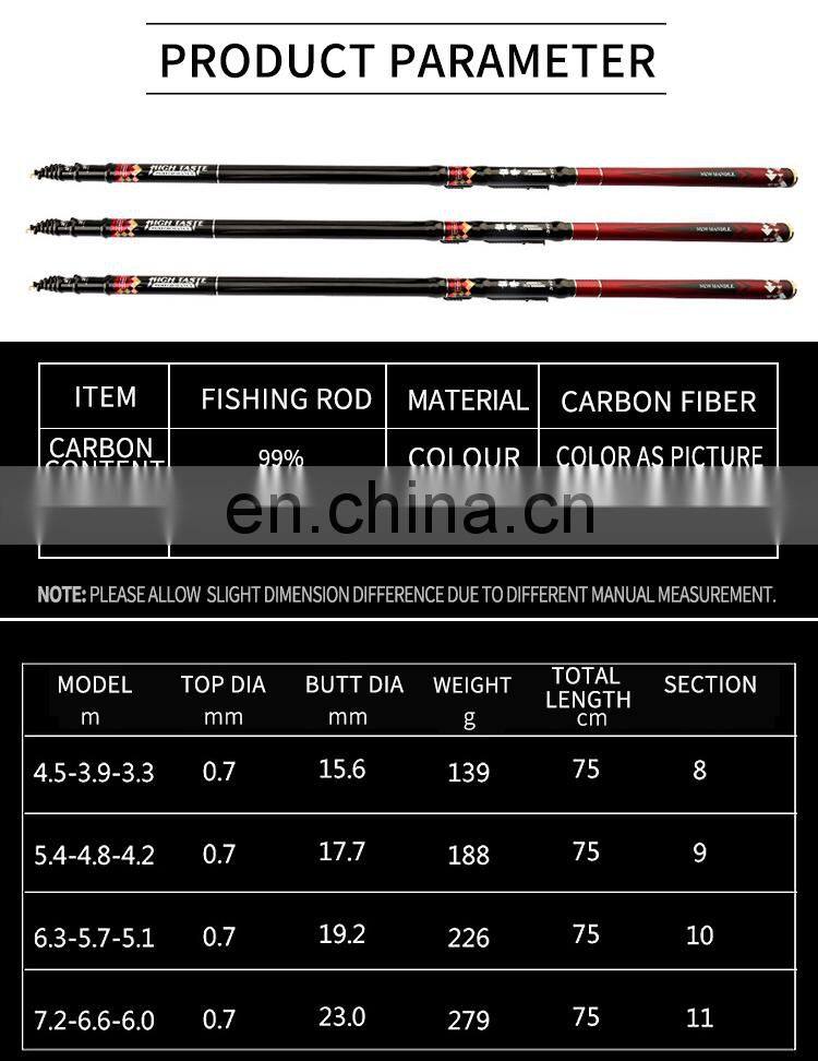 Chinese Fishing Tackle Manufacturers Super Light Hard Carbon Fiber 4.5 m Taiwan Fishing Rod TelescopicNegotiableMOQ: 1