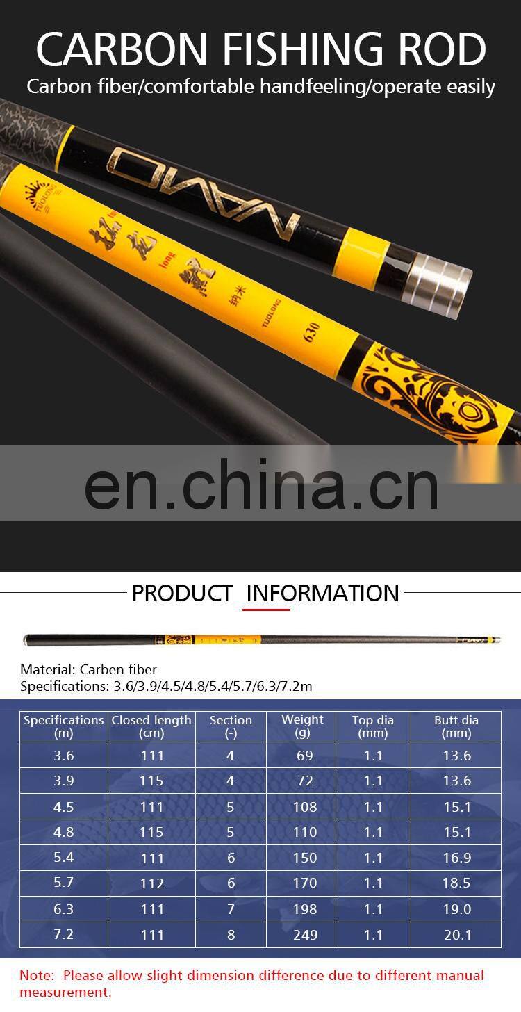 OEM Ultra-light Super-hard Fishing Rod Pole Carbon Fiber 3.6m 3.9m 4.5m 4.8m 5.4m 5.7m 6.3m 7.2m 8.1m Fishing Rods CarpNegotiableMOQ: 1