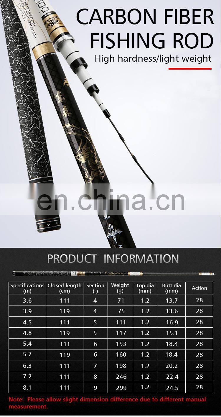 OEM Ultra-light Super-hard Fishing Rod Pole Carbon Fiber 3.6m 3.9m 4.5m 4.8m 5.4m 5.7m 6.3m 7.2m 8.1m Fishing Rods CarpNegotiableMOQ: 1