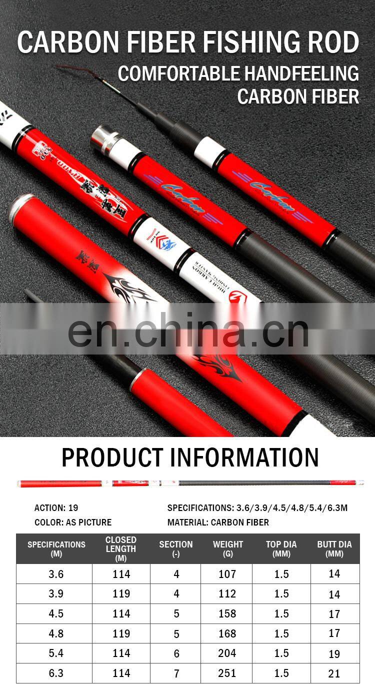 China Wholesale Super Strong 3.6/4.5/5.4/6.3m Carp Fishing Carbon Rod Super Hard Flow Hand Rod Super Toughness