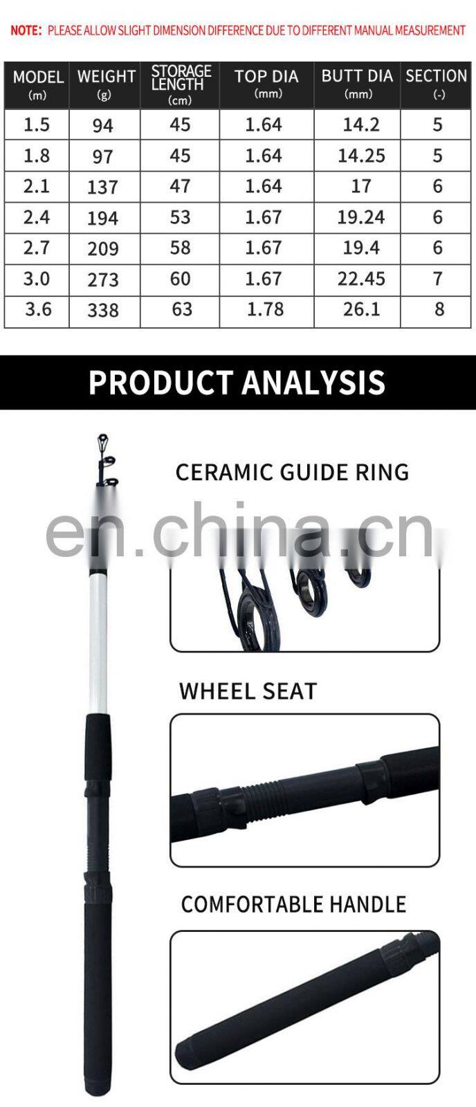 Manufacturers Selling 2.1m 2.4m 2.7m 3m 3.6m Carbon Fiber Fishing Rod Telescopic Sea Fishing HandmadeNegotiableMOQ: 1 Piece
