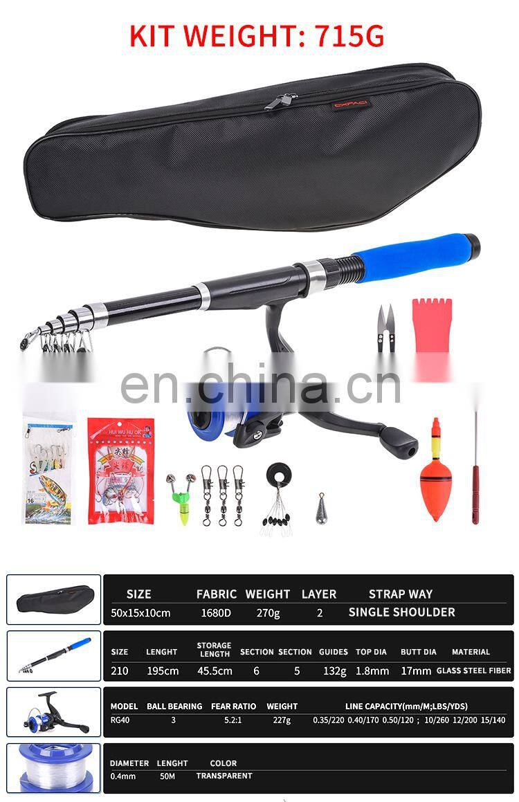 Best Selling Fast Action Fly Rod and Reel Bait Rod Fly Rod and Reel Combo 2.1M EVA ABS Fiberglass Sea Fishing Rod Set