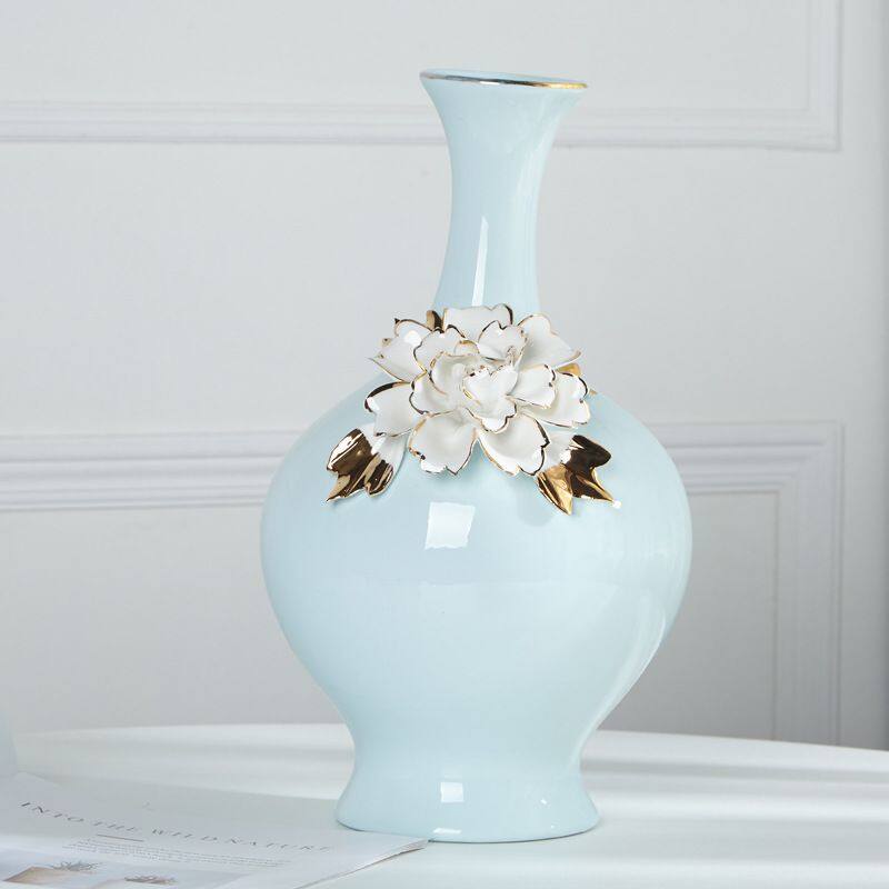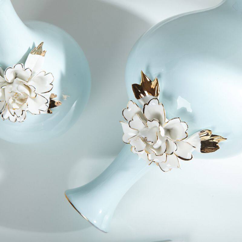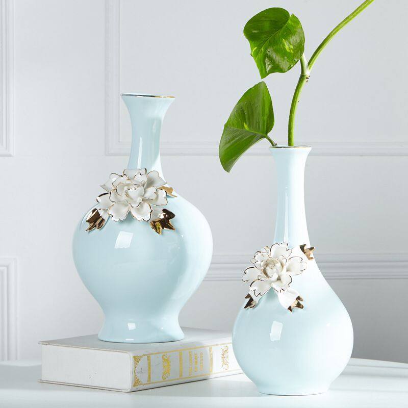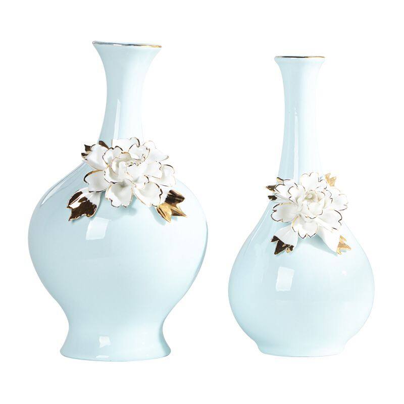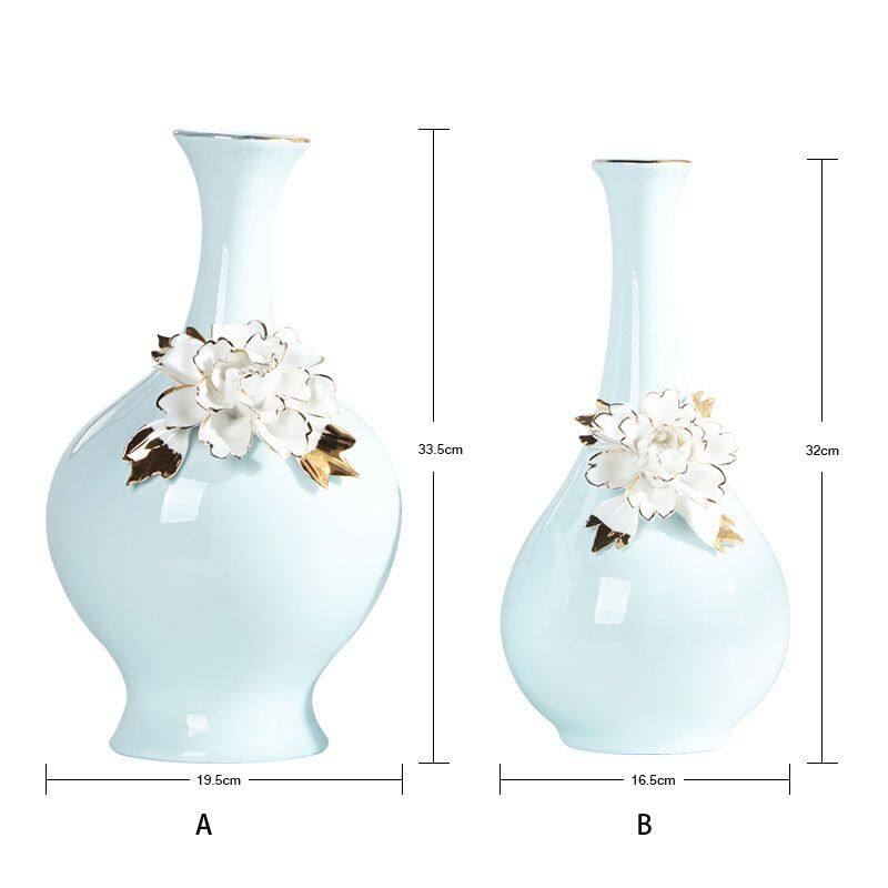 The material of this ceramic vase is high temperature ceramic, relatively heavy, all hand-pulled and hand-carved, each set is unique.A gilding process was used.The production method is semi-manual and semi-mechanical, and the origin is Shenzhen, Guangdong, China.The vase is blue with white ceramic flowers and comes in two styles.
