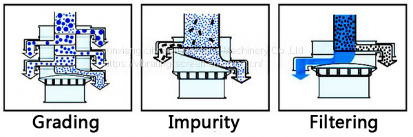 Rotary Vibrating Screen is a high-precision powder griddle, low noise, high efficiency, quick changer takes 3-5 minutes, totally enclosed structure, for grain, flour, mucus and other materials screening filter. Rotary Vibrating Screen is a motor for vertical excitation source, the motor and lower eccentric weight installed at both ends of the motor rotary motion into a horizontal, vertical, inclined three elementary motions, then the movement passed to the screen surface . Adjust the upper and lower ends of the phase angle, the material can change the trajectory of the screen surface.