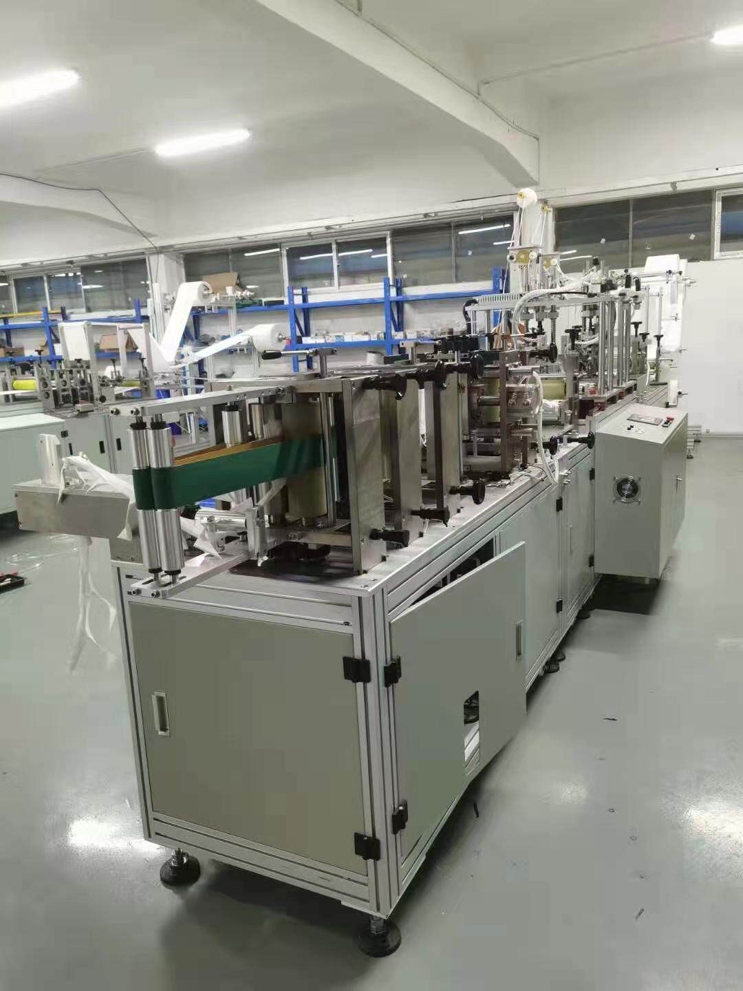 This machine is an all-in-one machine of automatic three-dimensional folding mask. From the feeding of cloth to the completion of automation of finished products, including (upper bridge strip, printing), spot welding of elastic belt, folding, forming, welding and cutting of finished products, waste removal, and finished product output, the automatic production on a machine is fully realized. (the whole machine only needs one person to operate).