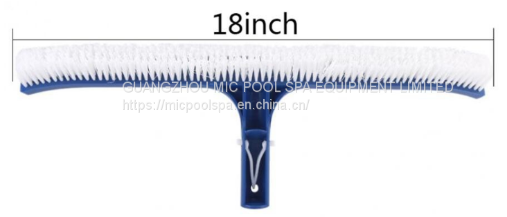 Standard curved pool brush Extra-long polypropylene bristles Dimensions: 4.5"H x 18"W x 5.5"D