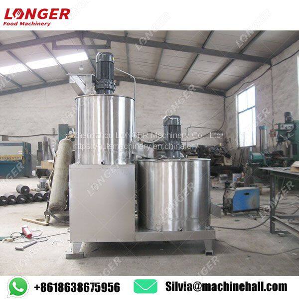 2. The raw material is infiltrated with hot water added with a certain amount of caustic soda. The reducer drives the agitator to rotate. Due to the structural characteristics of the compound agitator, the materials are circulated up and down, and the sesame and the infiltration liquid are mixed evenly and fully.
