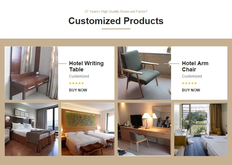 Mail packingNMaterialOptionalAppearanceModernPlace of OriginChinaChinaGuangdongBrand NameOEM/ODMModel NumberHT005Item Name:Custom made hotel furniture bedroom furniture setPart 1 in set:Bed Base, Headboard, nightstand, writing desk & hair, TV cabinet etc.Part 2 in set:luggage rack, Sofa, Side Table, Door, Wardrobe etc.Base material:solid wood (ash/oak/ashtree/beech/walnut/rubber) & E1 plywood/MDFSurface finish:veneer/ Melamine/ Laminate (Formica& Wilsonart & other brands)Lacuqer finish:high glossy finish (close grain) / matt finish (close/ open grain)Hardware:DTC, Hafele or other brandUpholstery:Fabric/leatherette/bonded leatherStructural joints:Mortised and tenonedExport Experience:Over 25 years