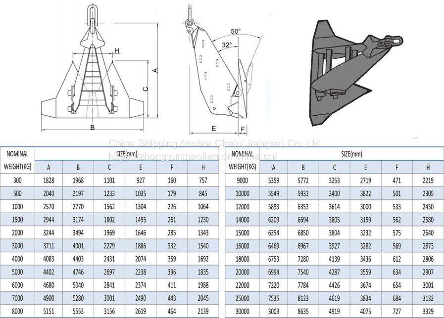 7425kg 7875KG High Holding Power Ac-14 Hhp Anchor Marine Anchor in Stocks