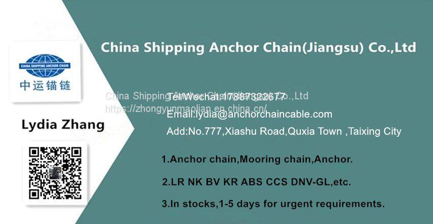 China Shipping Anchor Chain (Jiangsu) Co., Ltd was founded in 2010, total investment nearly one billion, intending to be the most modernized product line in China, manufacturing welded anchor chain, offshore mooring chain and steel structured anchor. We mainly manufacture marine anchor chain from 22mm to 162mm, offshore mooring chain, ship anchor chain, stud link anchor chain, studless anchor chain, galvanized anchor chain, offshore chain, buoy chain, marking chain, buoy chain, chafing chain, steel structured anchor, flipper delta anchor, delta anchor, stevpris anchor, MK5 anchor, MK6 anchor, spek anchor, hall anchor, admiralty anchor,AC-14 HHP anchor, aquaculture anchor, steel structured buoy, mooring buoy, shipboard fittings and so on, we can supply with CCS, BV, LR, ABS, KR, NK, DNV-GL and other certificate from 11 class societies and admiralty approval.