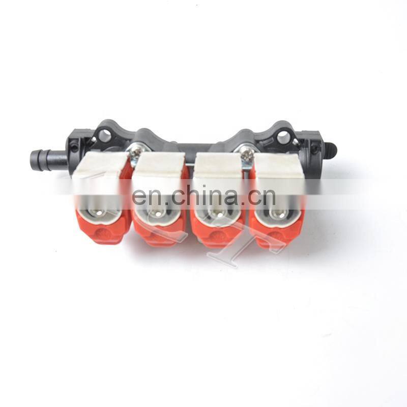 Injector rail is one part of gas engine air intake system ,comprised of a group of jet nozzles, temperature and pressure sensors, spray rail body, outlet nozzles and other components
