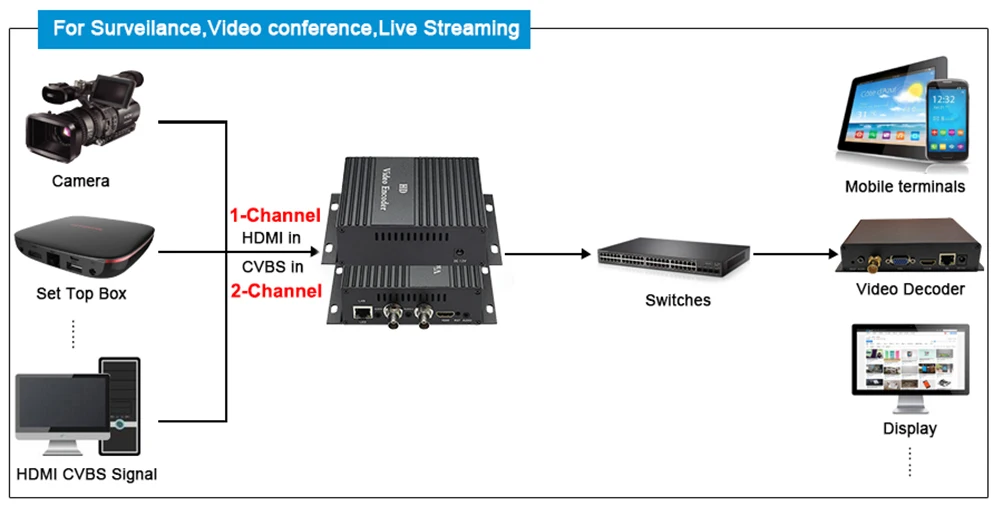Transport protocol: TS over IP output, SRT/RTSP/HTTP/UDP or RTMP protocol ForHDMI-Compatibleto IP output, 4*TS over IP stream out (SRT/HTTP/RTSP/UDP or RTMPs protocol) 2 Channels with higher resolution (up to 1080P) for large screen application, 2 channels with lower resolution (up to 720P) for small screen application) For eachCVBS to IP output, 4*TS over IP streams output can be set with different resolution, bitrate, protocol. | |