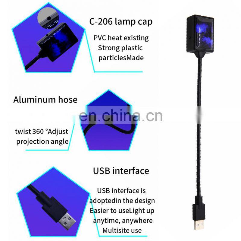 Features:1.360° rotation + USB interface: the car star lights can be rotated to adjust the lighting styleeasy to install.2.The bright Starry effect creates a romantic atmosphere for your car roof or house, and can also be used to decorate birthdays or holiday parties.3.A special gift for friends or children.4.It can be used as a night light, room decoration, car decorationSpecification:1. Voltage: 5V2. Power supply method: USB3. Length: 26.5CM4. Short press the switch, long press to adjust three modes: breathing, voice control, flashing