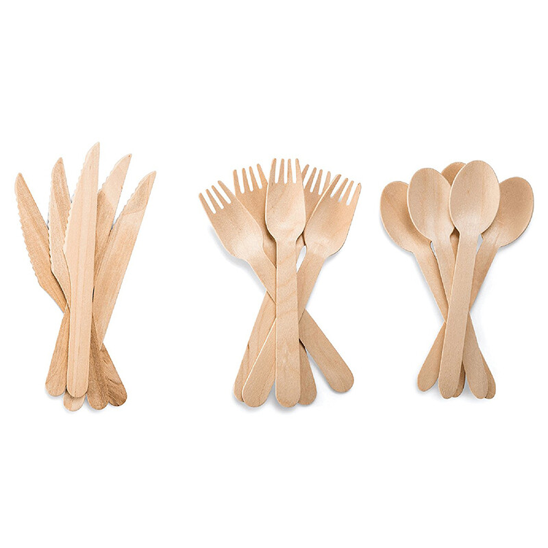 Sturdy Biodegradable Wooden Disposable Cutlery Wooden Cutlery Set Wooden Forks Wooden Knives Wooden Spoons