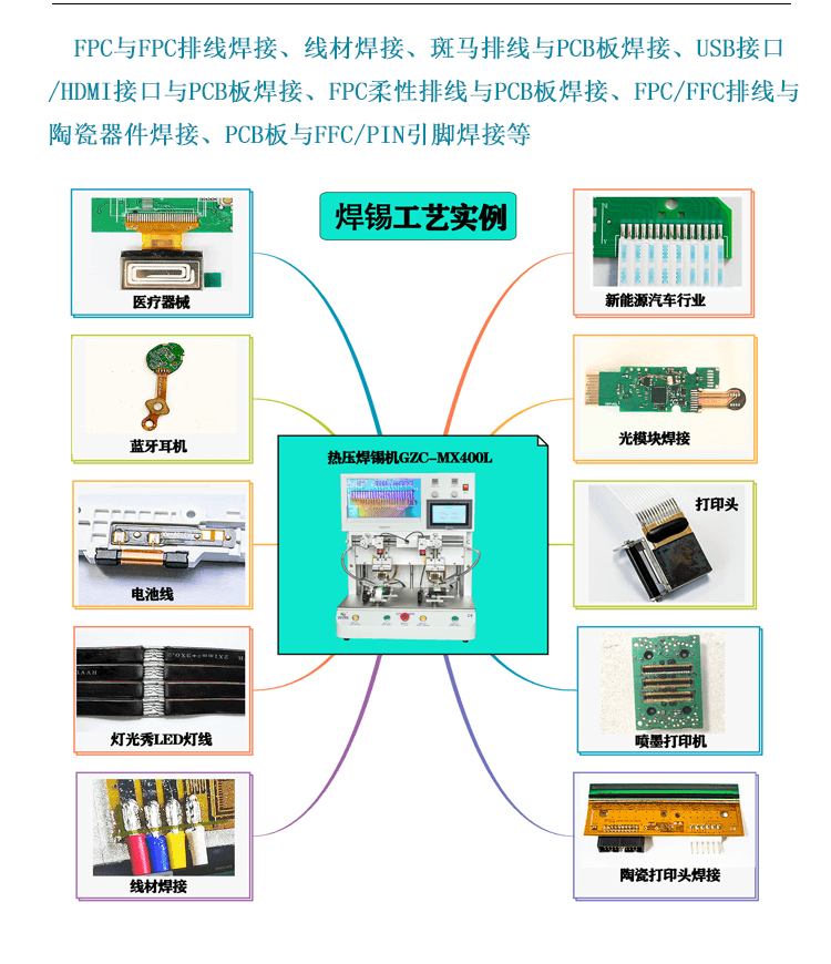 This machine is used for PCB FFC LCD soft lay wire welding, the standard machine includes cutter head and base platform.The product positioning mold is not included. Customers can make the product locally by themselves, or send samples and drawings to our company to make the product design, the cost is calculated separately.