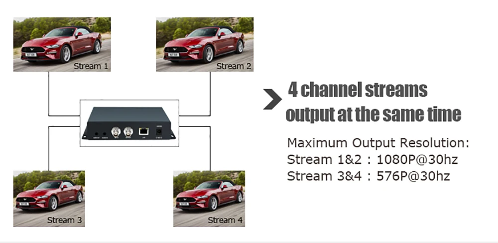 Support 4 channel stream output simultaneously.