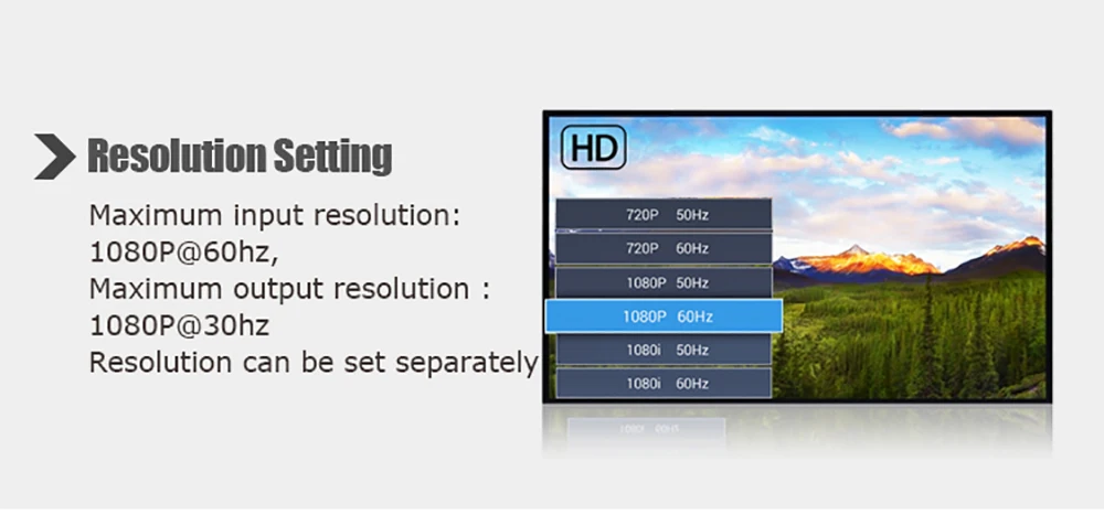 Support resolution 1080P\1080i\720P, 1600x1200\1400x1050\1440x900\1280x1024\