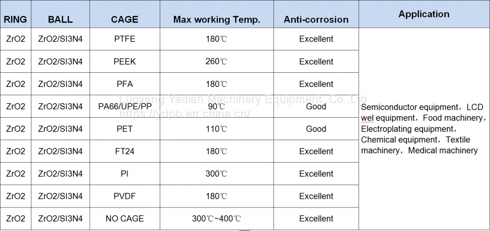 Full ceramic bearing of Zro2 materials has perfect properties such as high and low temperature resistance, high pressure resistance,corrosion resistance,anti-magnetic insulation and self lubrication, Therefore, it can work in special environment in which hybrid ceramic bearing and earing steel are not applicable