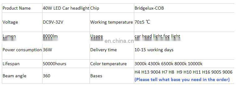 H4 H7 H8 9005 9006 40W 8000lm low price wonderful bright CR EE Bridgelux car led headlight