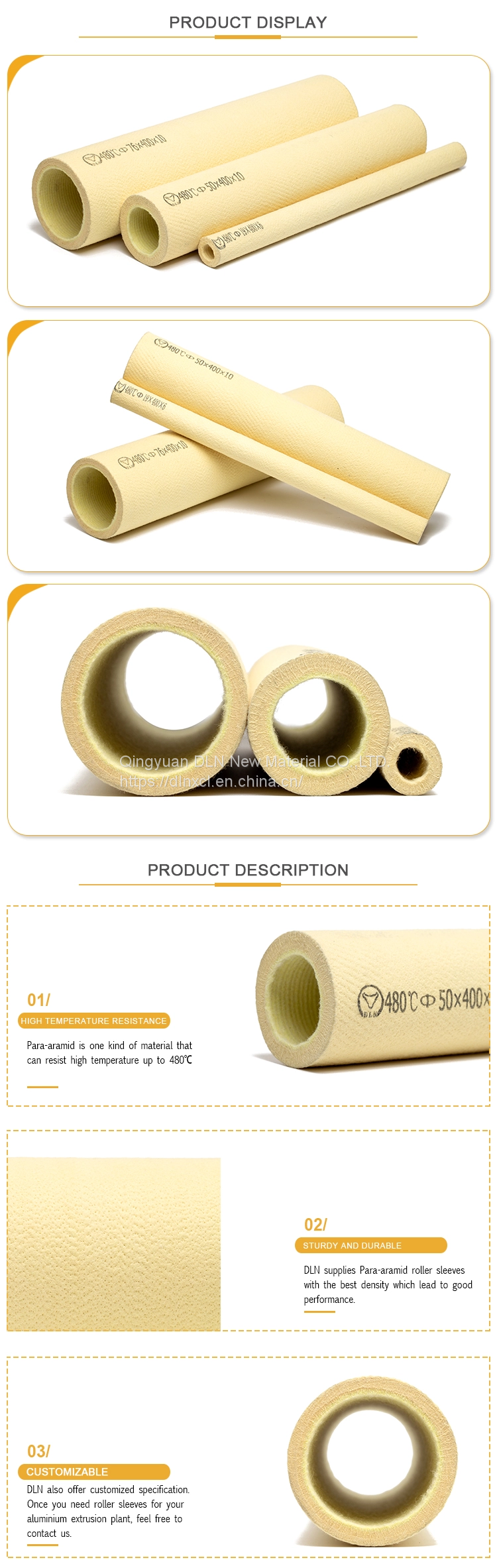 500 Degrees High Temperature Resistance Kevlar Roller Sleeve for Aluminium Extrusion Industry Handling System