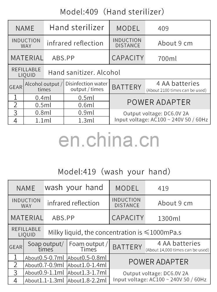 Automatic Alcohol Hand Sanitizer Dispenser Public Foam Soap Dispenser Free Spare Parts Plastic