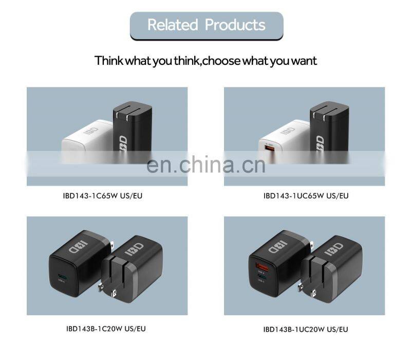 IBD 20w Gan Usb c pd Charger Black eu 20w Fast Charger Type c Wall Charger 20w for Xiaomi