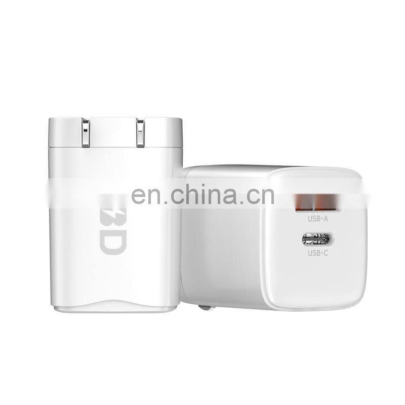 2021 New Trend 2 Charging Port USB A + USB C PD20W Wall Charger QC3.0 USB Charger Adapter for Phone 12