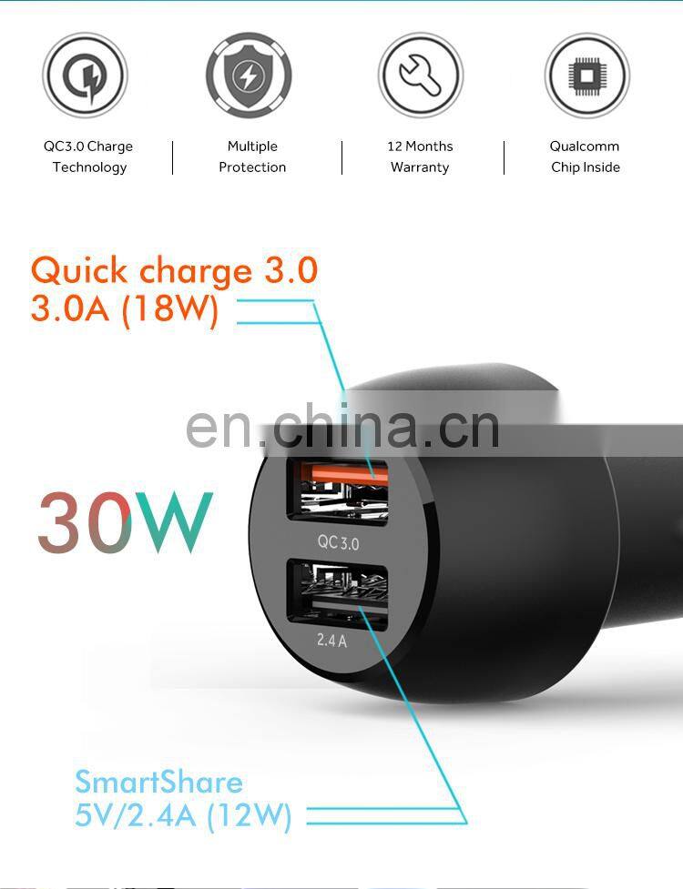 2021 New Product Hot Sale QC3.0+2.4A Dual Port With Patent Support Oem/odm Wholesale Car Charger for Iphine 13