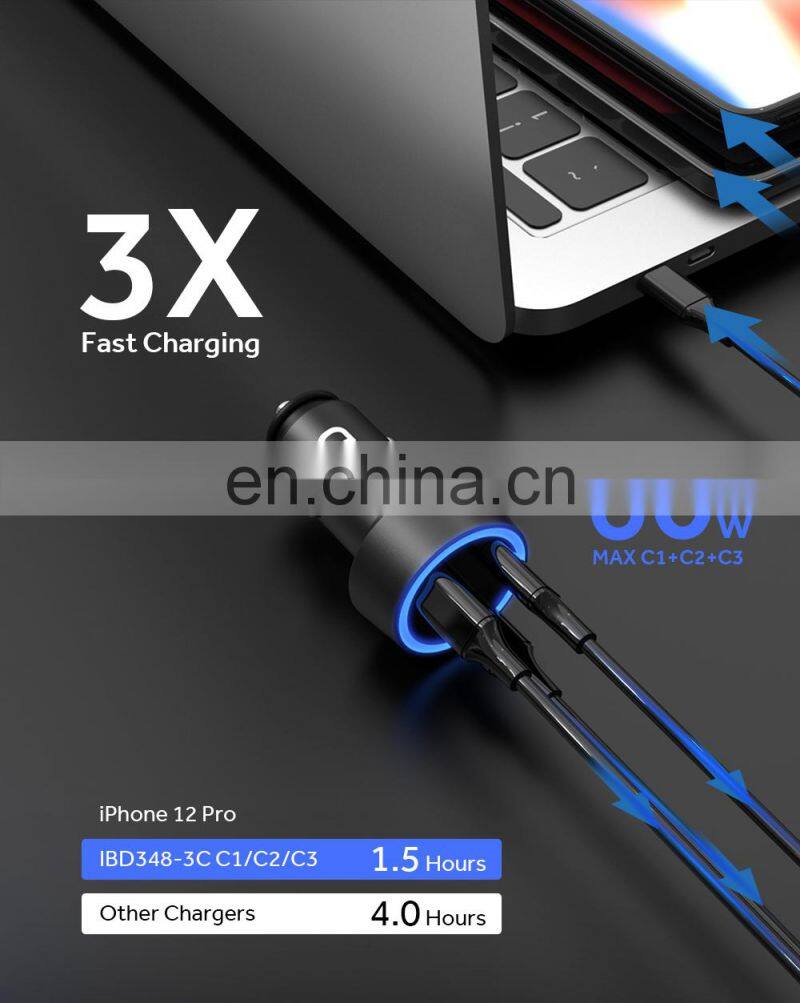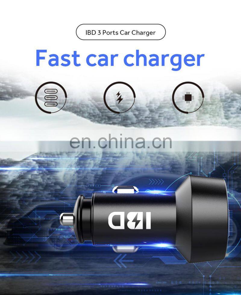 60W IBD Factory 3 Ports PD Unique Design Mobile Phone Adapter Car Charger for Earphone and Powerbank