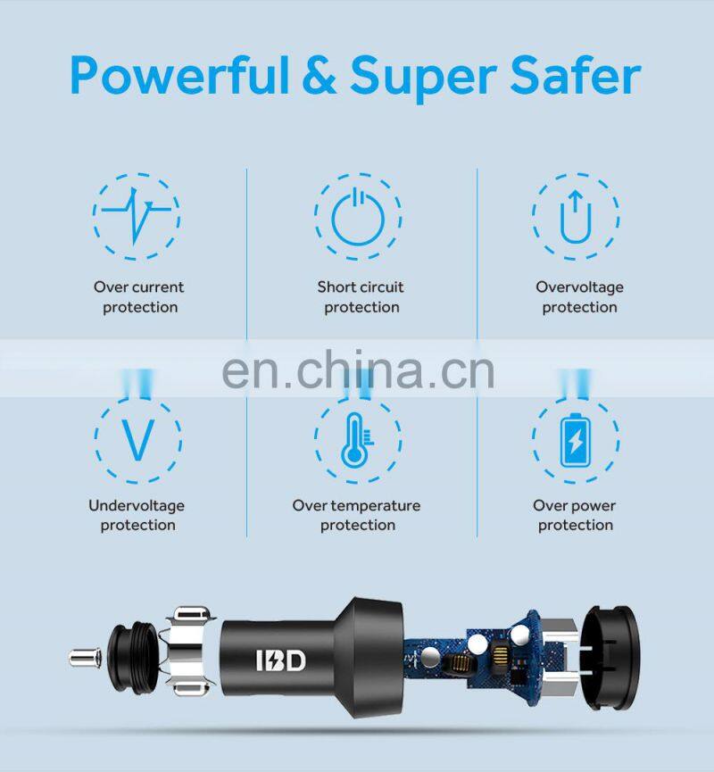 IBD Factory OEM Qc 3.0 95W 2 Port Aluminium Alloy Car Charger Usb Support Fast Charging of Samsung NOTE 10/+/Macbook