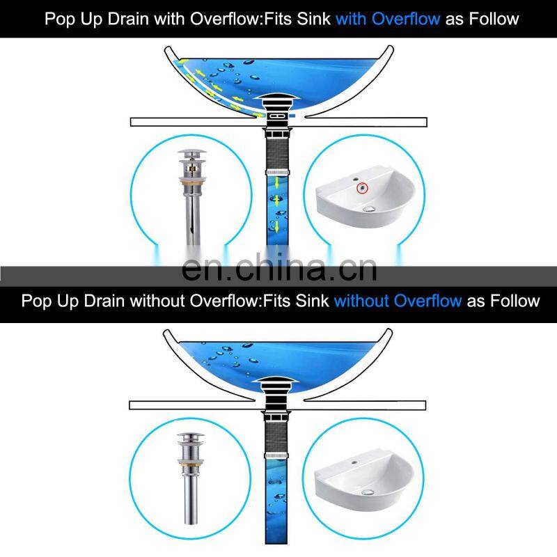 Bathroom Faucet Vessel Vanity Sink Spring Sliver Big Cap Pop Up Drain Stopper With Overflow