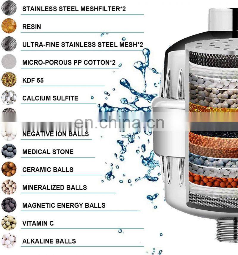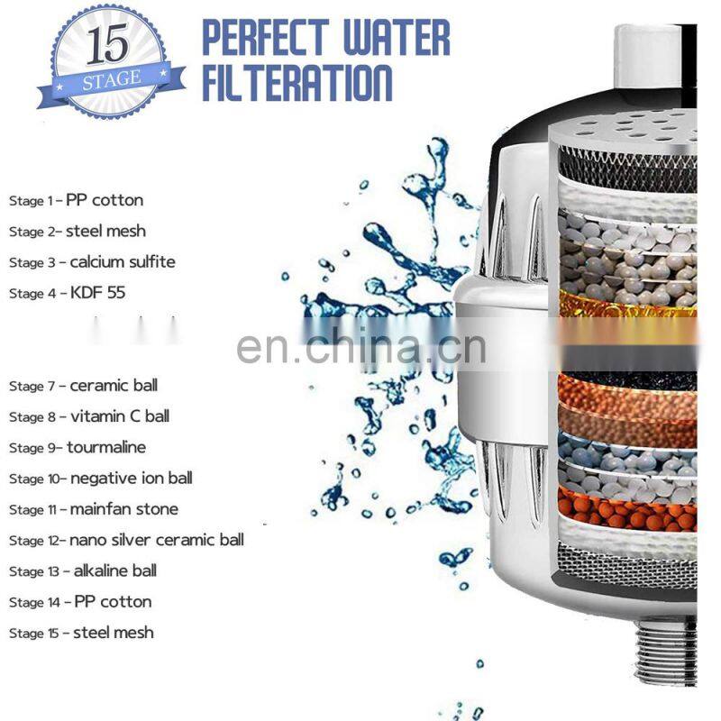 15 Stage Bath Shower Head Filter With Mineral Balls.