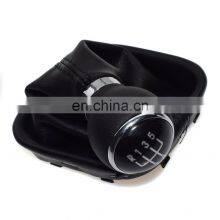 Black 5 Speed Gear Shift Knob Leather Boot For VW Jetta Golf 6 MK5 MK6 05-14 New