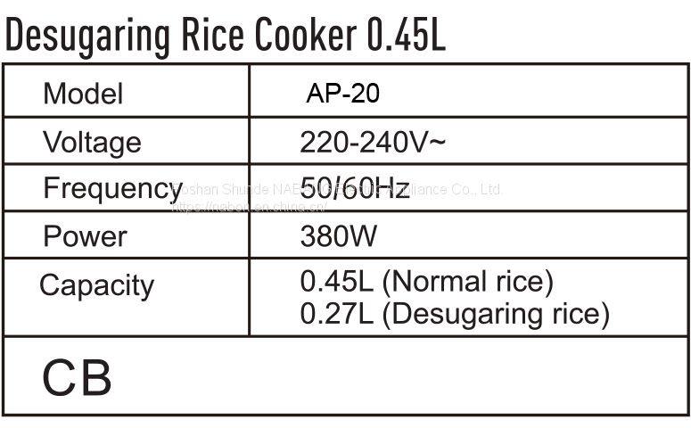 Home > Products > Electric Rice Cooker > 0.45L Low Sugar Multi Functions 0.27L Sugar-Reducing Desugaring Electric Digital Smart Rice Cooker