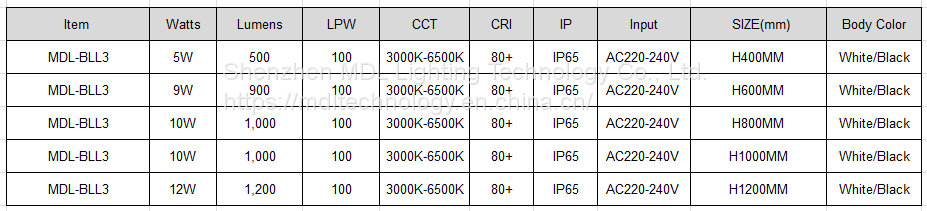 LED Bollard Light Model: MDL-BLL3