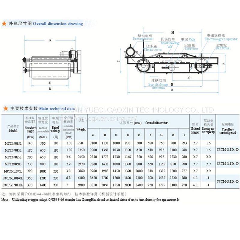 It is designed to be added platform and shelf, iron removing belt based on series MC23, which is suspended over the belt conveyer.