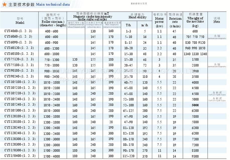 CYS Series permanence magnetic roller selector is applied to damp selecting tiny particles of powerful magnetic materials, or removing the mixed powerful magnetic mineral in the non-magnetic ore.