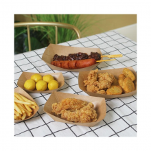 Home > Products > Paper Tableware > Disposable Recycled Kraft Paper Boat Tray With PLA Coating Fast Hot Food Paper Tray