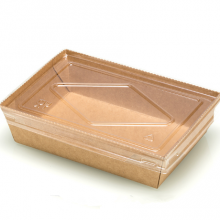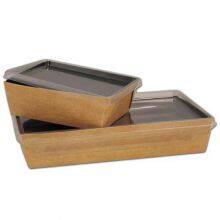 1600ml Degradable Rectangular Kraft Paper Salad Box With Clear Pet Lid