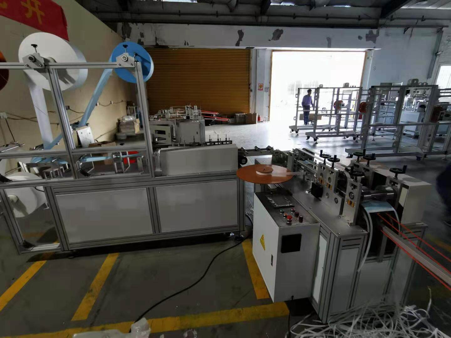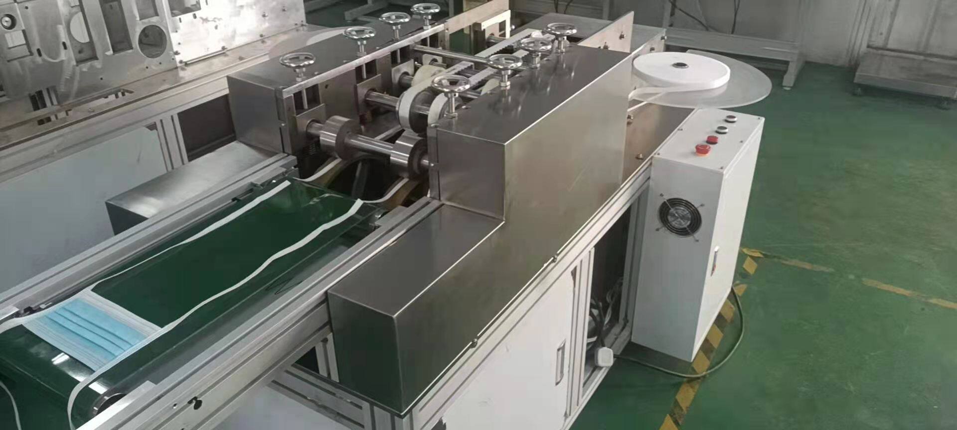 The strapping mask machine uses ultrasonic welding to weld the non-woven straps to both sides of the mask body. Only one person needs to place the mask body on the conveyor belt of the machine, and then pull the tube to wrap the edges, press the flower wheel, and cut the straps. The work of outputting and outputting the finished product is completed automatically.