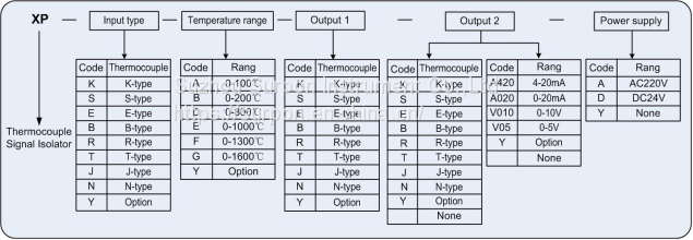 Example 1 input: K-type thermocouple, 0~800℃, output: one channel K-type thermocouple, power supply: 24VDC